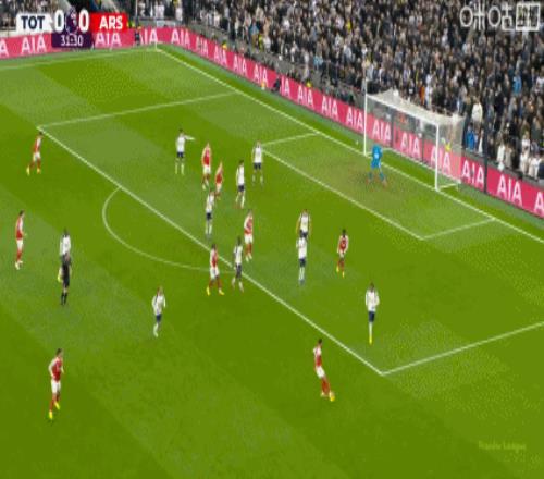 第34分鐘,賴斯帶球失誤被斷,穆阿尼破門!熱刺1-1扳平阿森納!
