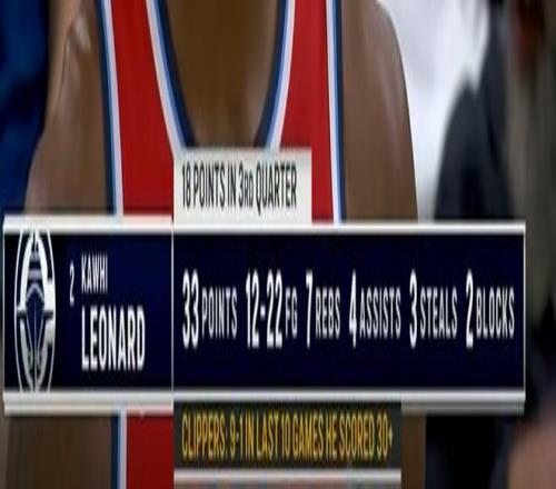 根據(jù)數(shù)據(jù)統(tǒng)計,在最近萊昂納德單場突破30分的比賽中,快船的戰(zhàn)績是9勝2負(圖片中的數(shù)據(jù)是轉(zhuǎn)播方在比賽期間給出的,不算上本場比賽)。此役,萊昂納德25投14中,得到37分8籃板4助攻。