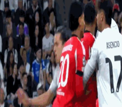 第54分鐘,阿諾德開(kāi)出角球,阿森西奧頭球攻門(mén)稍稍高出