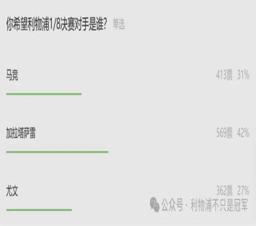 卡拉格更想要加拉塔薩雷的觀點(diǎn),與我們昨天的投票情況一致,更多人選擇了加拉塔薩雷,甚至有27%選擇了昨天賽前三球落后的尤文,大家多少還是對馬競抱有更多“敬畏”之心。