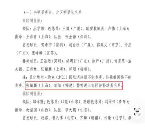 官宣!CBA全明星換人,張鎮(zhèn)麟撿漏,1人意外頂上,球迷為何不買(mǎi)賬