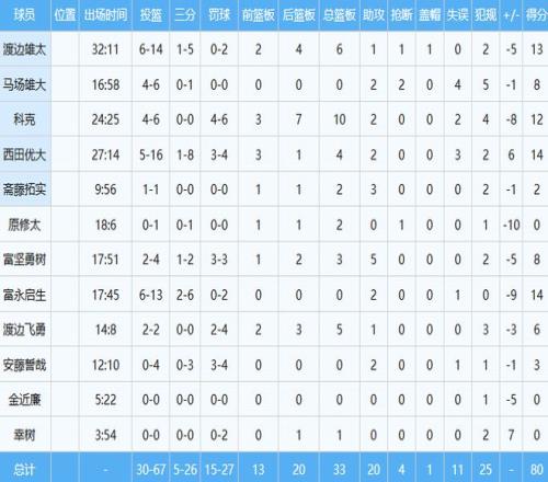 日本男籃數(shù)據(jù)如下: